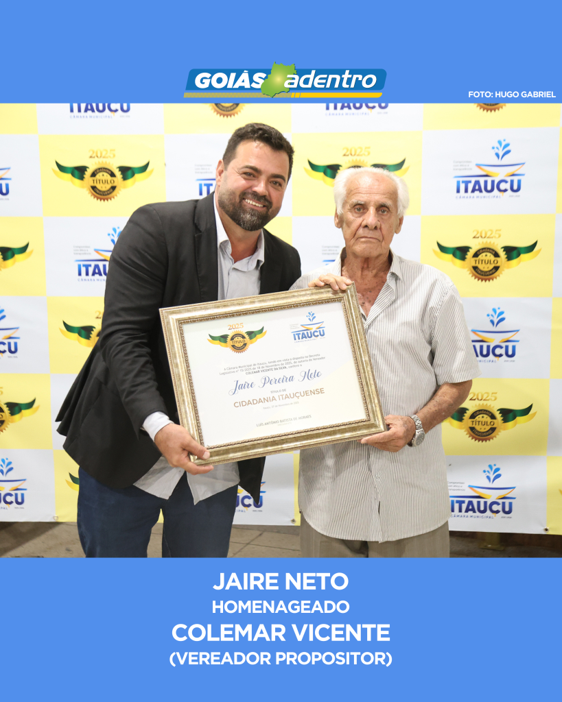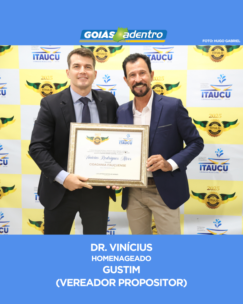 A Câmara Municipal de Itauçu concedeu título de cidadania para pessoas que contribuíram e ainda contribuem de forma efetiva com o desenvolvimento do município. A mais relevante honraria que o Legislativo concede a seus munícipes, que passam a ser formalmente reconhecidas como parte integrantes da comunidade, foi entregue em sessão solene realizada em 27 de novembro, no salão do Grêmio Recreativo Itauçuense – GREI.