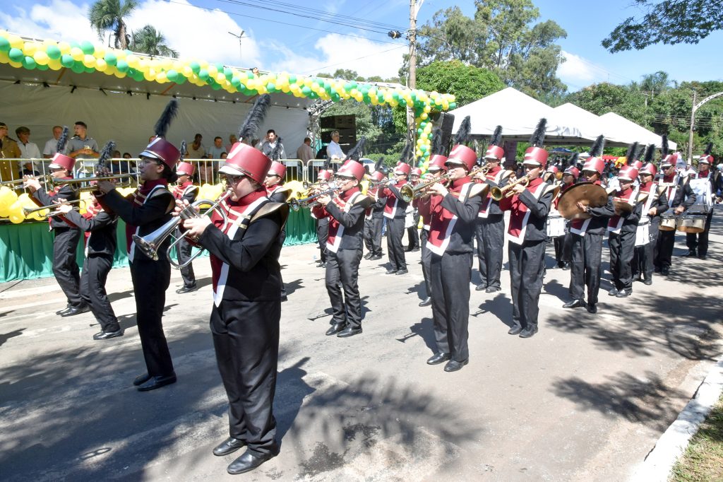As bandas marciais foram destaque, com participações da PM, dos Bombeiros e de escolas convidadas de outras cidades, elevando o nível das apresentações.