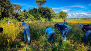 Voluntários registrados durante a colheita de arroz – Foto: Diêgo Gomes