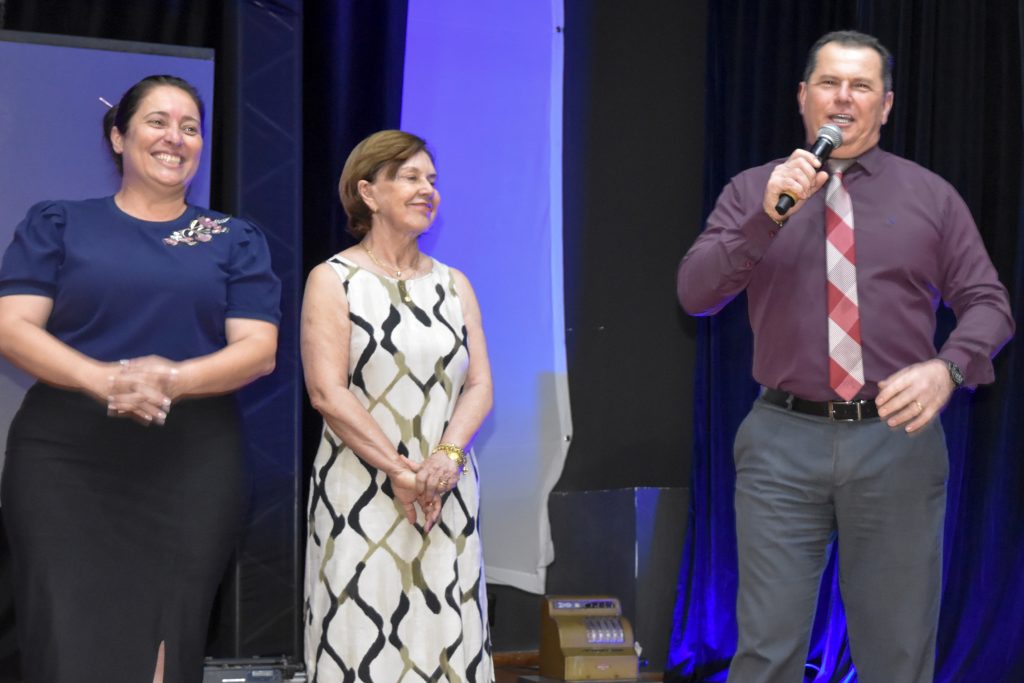 Promotor de Justiça Maurício Gebrim ladeado pela primeira-dama Marly Essado e secretária Elaene Braz